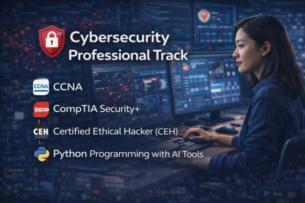 Gain the skills to protect digital systems and networks from cyber threats. This track covers core areas such as networking, system security, ethical hacking, and Python programming. You’ll learn how to identify vulnerabilities, secure infrastructures, and build a solid foundation for a rewarding career in cybersecurity.