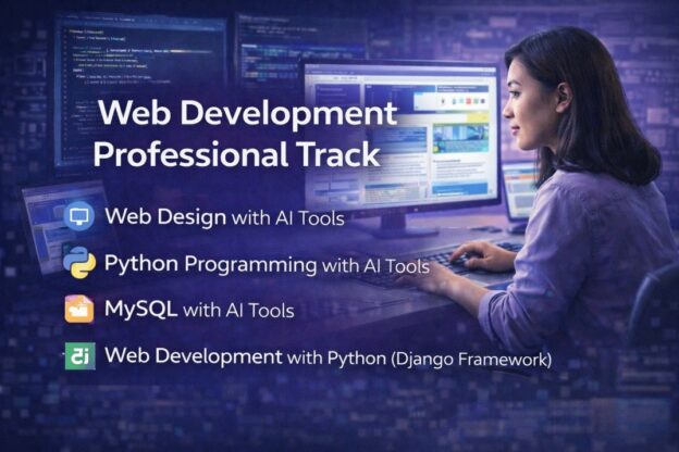 Learn to build modern, dynamic, and responsive websites from scratch. This track introduces you to web design, programming with Python, database management with SQL, and advanced web development using Django. You’ll gain the technical and creative skills to bring web projects to life.